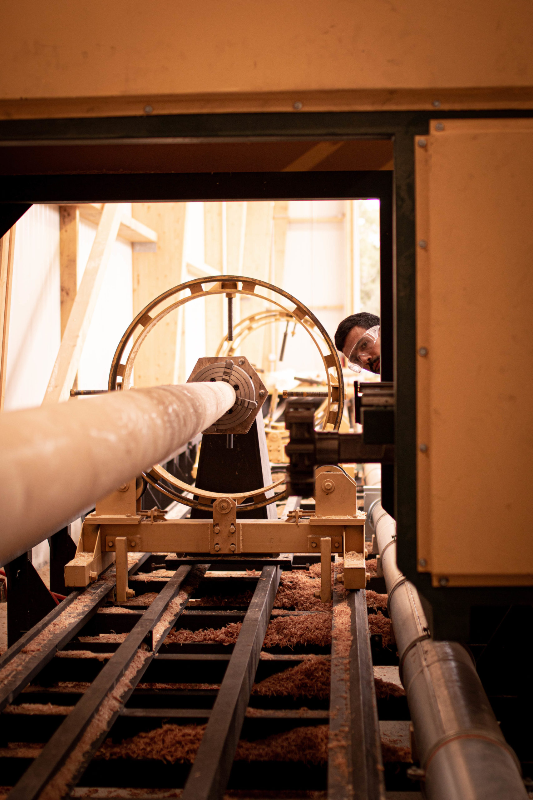 L’atelier de WOODSPARS, doté d’équipements uniques en Europe, a permis le sciage et l’usinage précis des 150 poutres dans des délais optimisés.